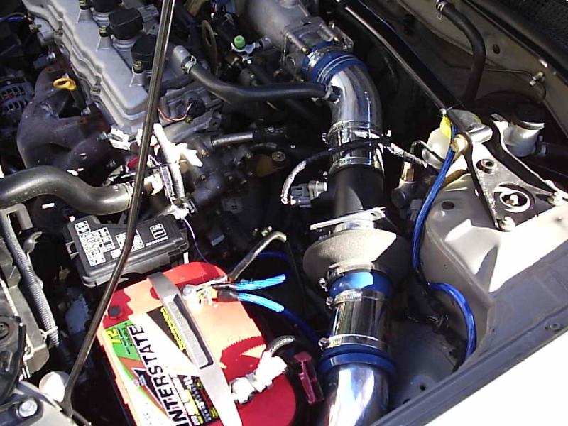 1.8L DOHC with AEM Cold air intake and 2.25" Custom exhaust.