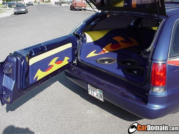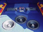 Panasonic head unit with 7" flip up screen, 6x9's , tweets, 3 12" JL subs, all pushed by Phoenix gold amps..
