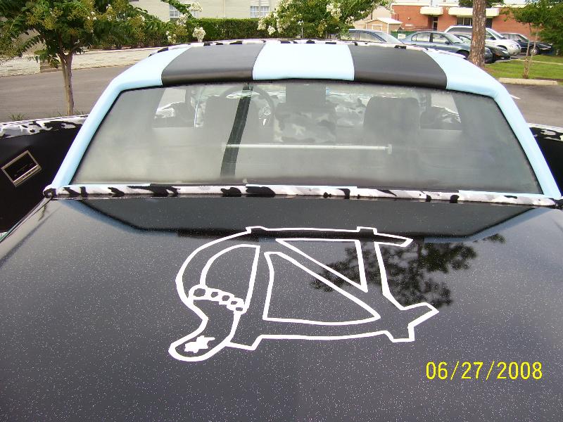 Black With Silver Flakes... Rag Top Is Carolina Blue With Black Racing Stripes Trimmed With Urban Camo... StreetGlow Blue UnderBody Kit...