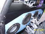 2 Stinger Batteries... Pioneer CD Player... 4 Audiobahn 6 1/2s... 4 Audiobahn 6x9s... Audiobahn 400 Watt Amp On The 6x9s... 6 Audiobahn 12s, 2 In The Trunk And 4 In The Back Seat... Audiobahn 800 Watt Amp On The 2 12s In The Trunk... Bazooka 2000 Watt Amp On The 4 12s In The Back Seat...