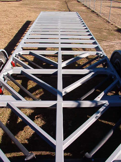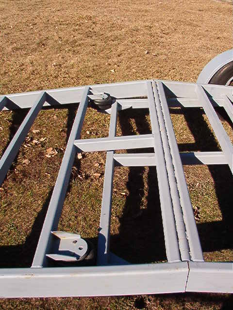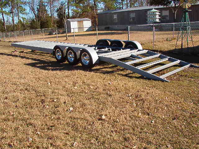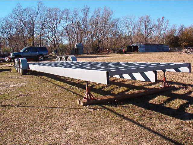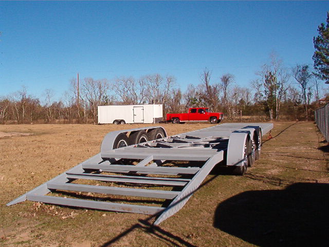40 foot deck gooseneck trailer that lays flat on the ground with a hinged dove tail so no ramps will be needed