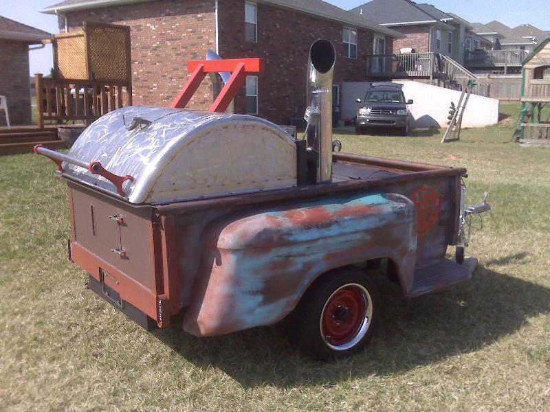 Twin 6in. stacks--Lump Charcoalin the grill and Oak in the firebox