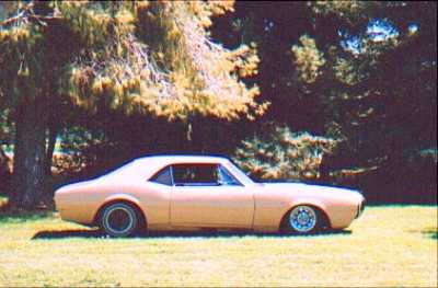 Air Suspension. 255C in front with custom brackets. 1/2" line with SMC valves and a four link in the rear with 224C's. Custom fab'ed rear wheel tubs 2" wider and 3.5" taller than the stock. 3/4HP compressor w/ 175psi pressure switch filling two three gallon tanks.