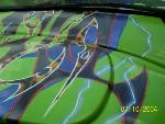 -custom tribal airbrush on hood - yellow and black cheetah, carbon fiber, blue marble, and lightning