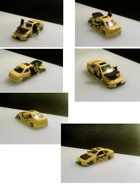 Fully shaved: door handles, moldings, roof rails, taillights, wing holes, tag box, trunk lid molded in, modified front and rear black widow bumpers, intregra black widow sides (sides don't hang lower than bumpers like usual), black housing headlights, real carbon fiber hood, real carbon fiber front splitter, real carbon fiber rear diffuser, painted chrome yellow with graphite flames, Suicide Drivers door, Lamborghini passengers door with fully working hinges, all custom made out of aluminum