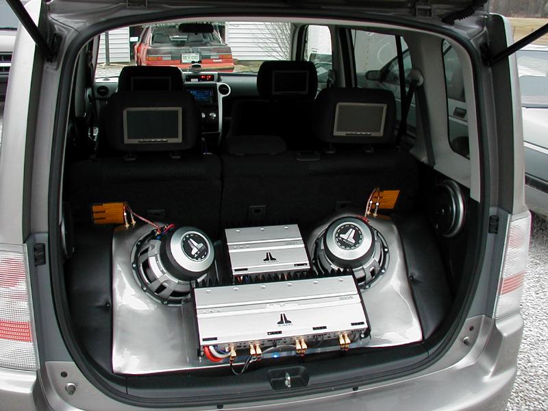 kenwood double din touch screen, 4 headrest, 2 JL w6 in a custom box, JL 250/1, JL 1000/5, both mounted on plexiglass with leds under to light up the glass.