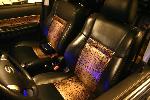 Pioneer fold out up front, two clarion 8" headrest monitors, 2 treo 15's with precision power amps, custom encloser