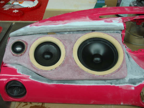 Painted lower dash, Custom upper dash with JL Audio 3 way setup molded in, Full custom door panels with pained inserts,Leather wrapped seats, Everything windows down is ultraleather, everything windows up is suede.