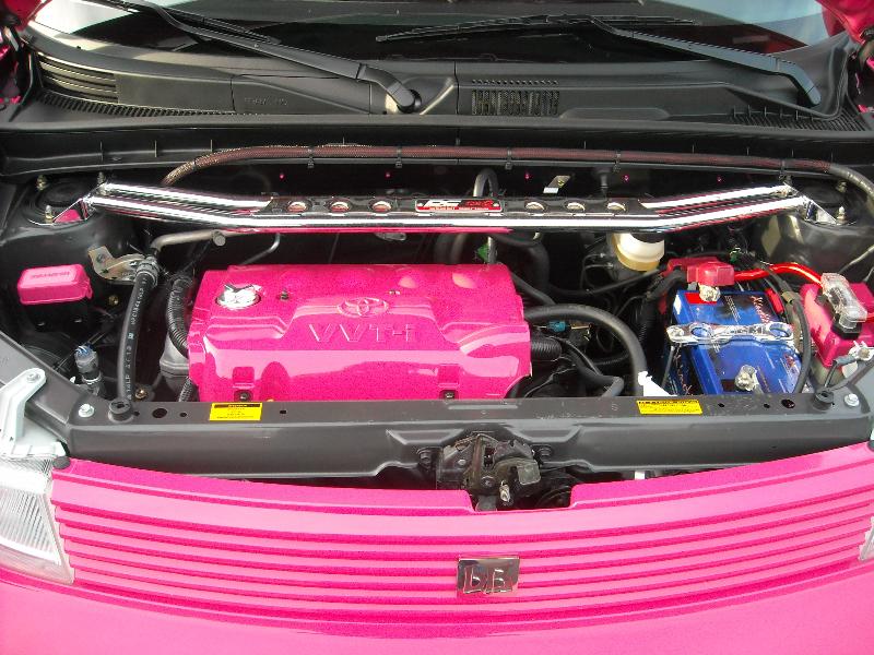aem cold air intake, aem battery hold down, aem oil cap, dc sports header, dc sports strut tower bar, dc sports exhaust,assorted painted pieces under hood, iraggi 200 amp alternator, Kinetic battery