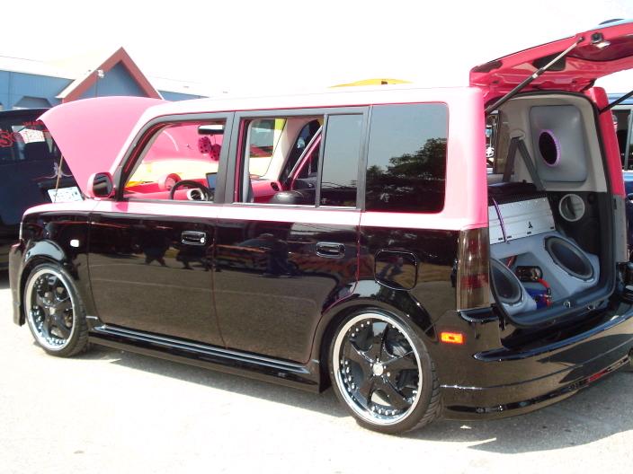2 tone hot pink/ black ppg paint, bb emblem, cleared corners, painted/ smoked taillights, oem spoiler, Inalfa glass roof