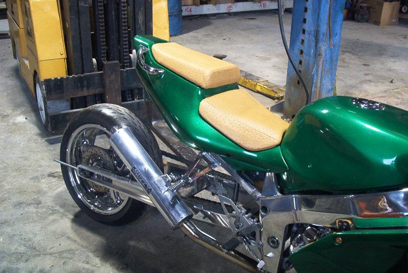 KANDY GREEN WITH SILVER FLAKE EVERYTHING CHROME OSTRICH SKIN SEAT