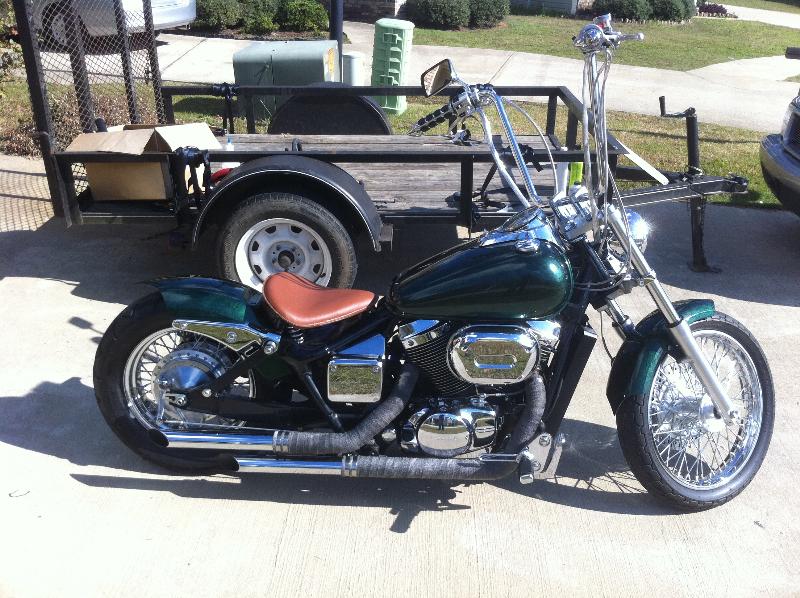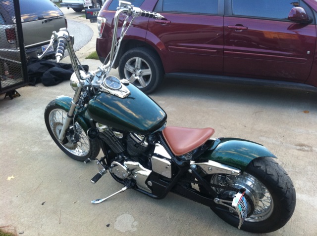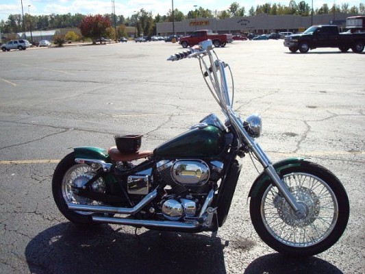 Custom green paint, Custom fenders, ape hangers with custom grips, removed reflectors and turn signals, custom leather springer seat, Chrome billet tag holder/ led brake light. + more