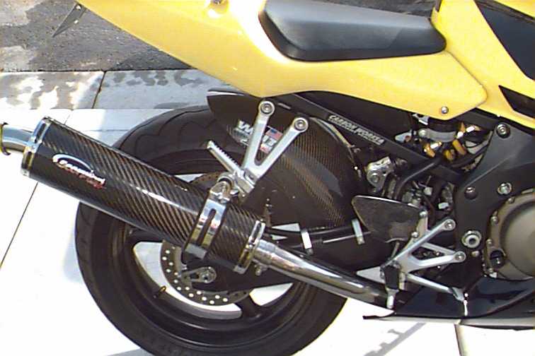 Honda CBR600 F4i- Power ComaNder 3r, RK Gold Chain 520, RK 46 sproket, and a carbon fiber scopion pipe.