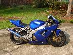 Stock candy blue paint. blue frame sliders, Sportech chrome windshield. fender eliminator kit. All lenses are flush and clear, tribal heel gaurds.