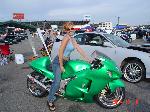 candy lime green paint, tons of chrome, extended swing arm, all aftermarket lights, full yoshi exhaust,
