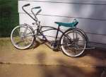 the frame is a firestone frame that my dad had as a kid, it painted 2001 ford purple metallic with green seat and grips, I still have the orginal handlebars