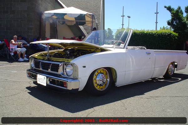 recessed gas tank in the bed floor, and I am in the process of shaving everything I can think of. Also has a 93 Nissan Chrome grille and front bumper