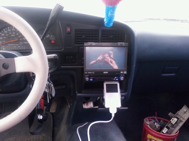 Jensen VM9312 Flip Out Touchscreen TV, 80 Gig iPod, Playstation 2, 1-10" Kicker Comp CVR in a Virtual Technologies Wave Box pushed by a 1000 watt Sony Xplod amplifier,