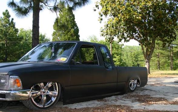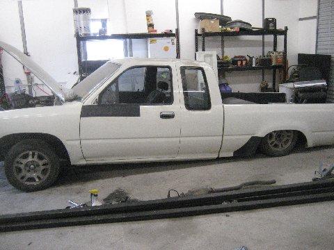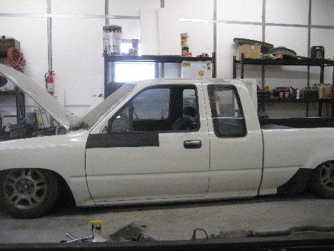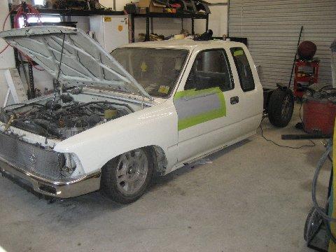 Nissan Xterra tails. Fiberglassed center console with place for 1 12 in the Ext Cab. Fiberglassed Dash with Mazda6 or 06 F150 Air Vents. B.A.D. Steering Wheel. Convert to Power locks. Suicide Doors, rebuilt 22RE turbo, retub for 22s =)