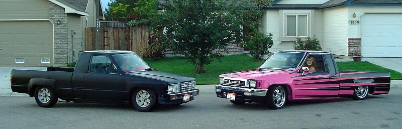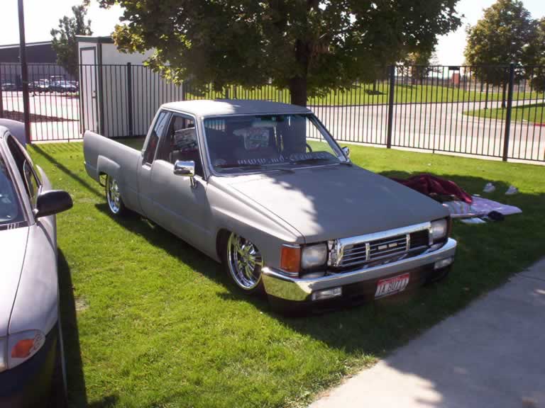 Shaved: Door handles, antenna, hood squirts, 3rd brake light, emblems, tail lights. Full skin combo, lexan window, 4Runner bumper and grille, chrome side mirrors, flush mount fiberglass tanneau however the hell you spell that... 3" body drop