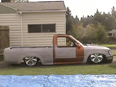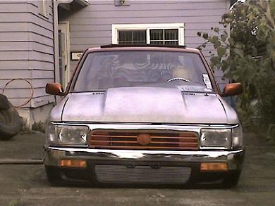 4 runner front end, cowl hood, shaved antenna, suicide doors, sliding rag top, shaved door handles, shaved and molded in tailgate, l.e.d. tail lights, and a custom license plate box