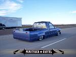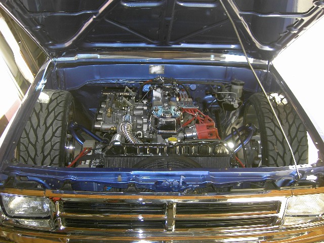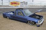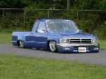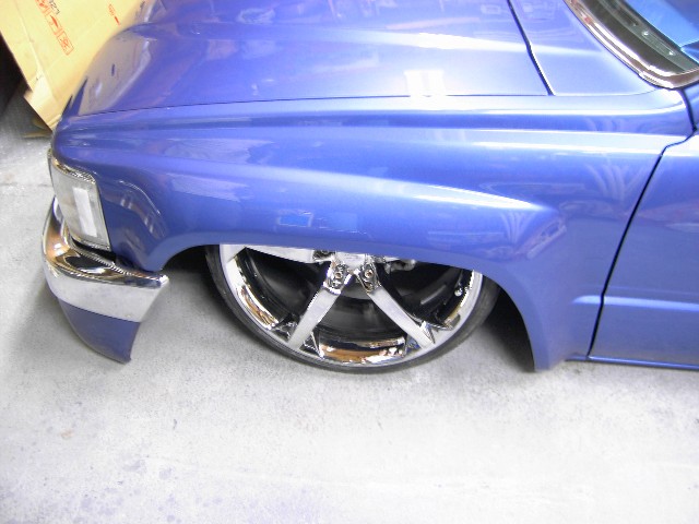 3"Bodydrop. 88 4wd chrome grille. 4wd Fenders. 97 4wd Tocoma bumper and valance. Clear corners. Stock hood,no supports cut. No motor drop. Shaved hood squirter, wipercowl, antenna, gas door, doorhandles, locks, taillights, body seams, rear corner bodyline. Rear Combo Skin.Graft 4wd front fenders to bedsides. French LED trailer taillight. Popup license box{air}. 40x30 ragtop. Harley billet mirror with blinker. MAS Racing Products 14 gallon spun aluminum fuel cell.
