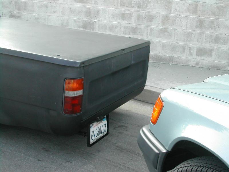 full 95 4runner front, clear corner and bumper lights, 4x4 fenders, shaved rocker holes, antenna, door handles, tailgate handle, 3rd brake light, hood pissers, welding in and molded rollpan, custom license plate, gaylords bed cover. 5% window tint with mirror flames (but changing the design..this was just a practice tint)