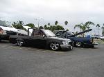 Slam Specialties RE6front bags, DJM front shocks, custom front bag mounts, frame z’d in front 1 ½”, Belltech drop spindles, modified upper control arms, custom bolt in transmission x-member, custom rear frame clip from cab back using 2X3 ¼ wall tubing, relocated gas tank, custom dual Optima battery rack, class 3 style hitch, custom 2 link setup with heimed diagonal panhard bar, Slam Specialties rear bags, DJM rear shocks, 5 gallon air tank (dual 2 gallon frame mounted tanks shortly), SMC valves (Slam Specialties DSV dual speed valve setup installed, not yet plumbed), slowdowns on lift valves,Firestone dual needle air gauges mounted on A-pillar, AZ compressor, engine driven compressor