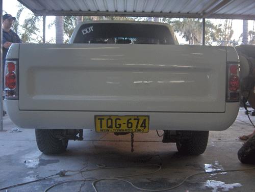 Shaved tray, rollpan, clear light all way round, chrome front bar and apron, shaved tailgate handle. dark tint.