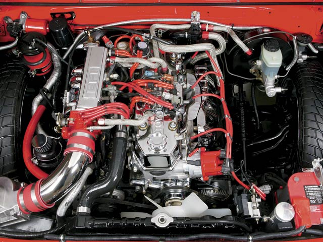 Painted Red; fuel filter, throttle body, distributor cap, and magnetic spark igniter.