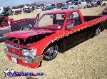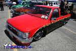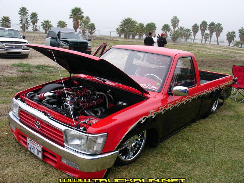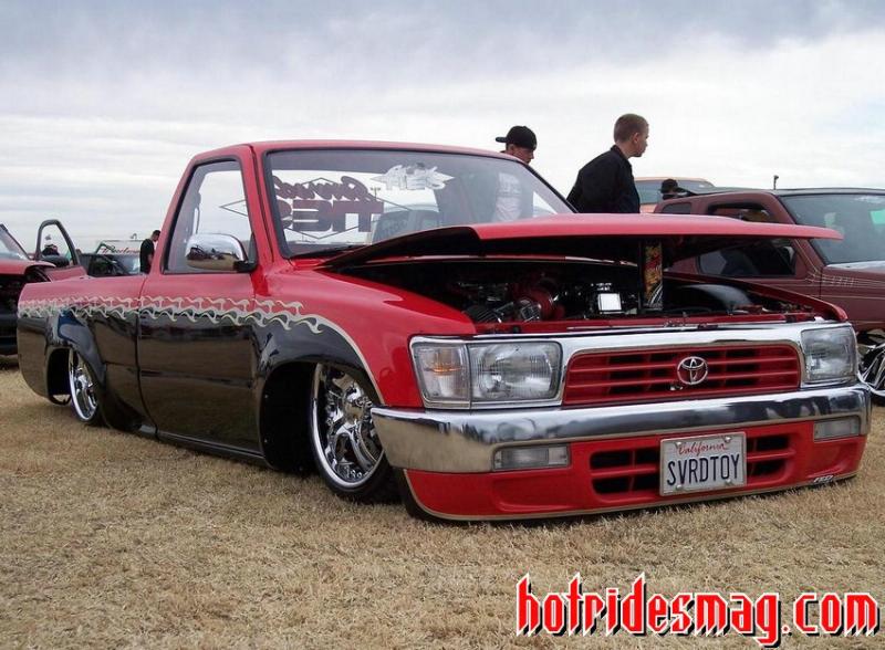 Before flames continue down the side of the truck, it starts out as a straight line all along the bottom of a Toyota 4 Runner valance and skips over a chrome and red 4 runner front-end and onto Toyota 4x4 fenders.