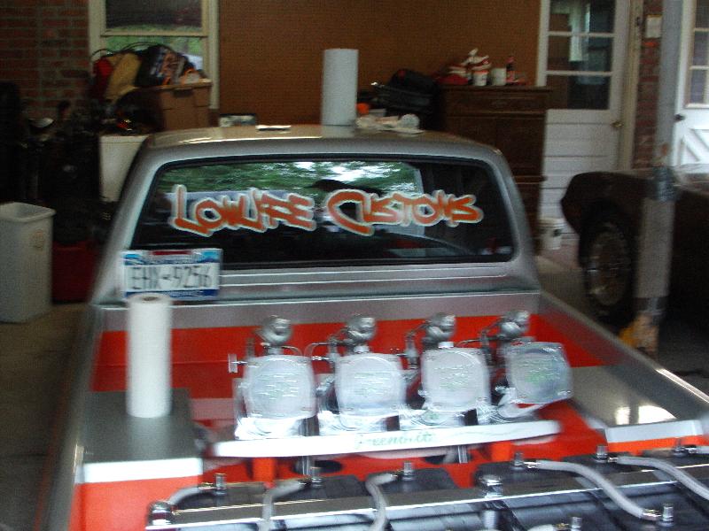 4 Pump Prohopper setup, 8" cylinders, 3" Bodydrop, Grant customs bumper, FBI full skin in back with LED tails