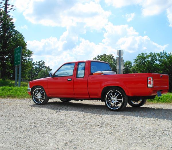 Toxic shocks all the way around 2 inch drop spindles in the front with torsion bars cranked down for a 4 inch drop in the front 4 inch blocks in the back