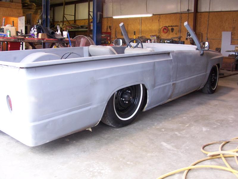 Shaved everything, welded bed seams, 39 ford taillights, luvers in hood