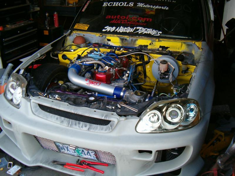 Well, it's coming along. I originally built the fenders to sit high enough I could use a stock Honda hood. Now Im BD'd 2.5"s. So, I'm gonna redo the entire frontend and front frame. I'm gonna redo the rearend some. I want to add 2 reverse bars with bags mounted on them, relocate the battery and do some tubular work.