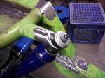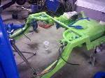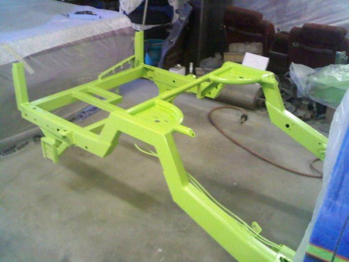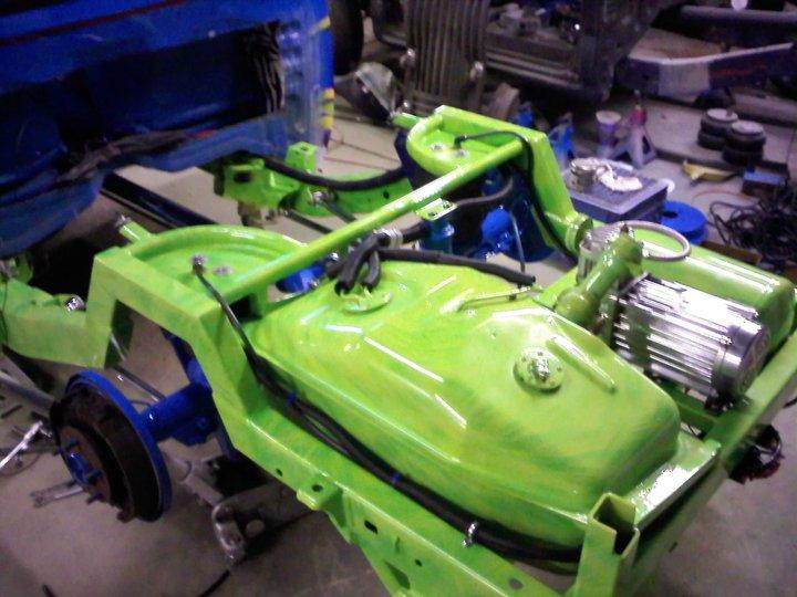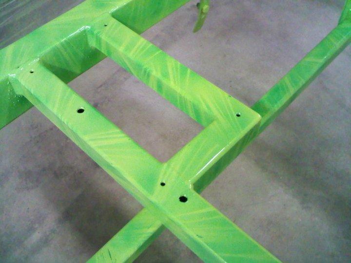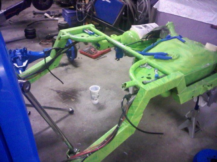 full air ride with chrome upper control arms, chrome 4-link, 1/4" SMC's with 3/8" line...Frame is fully painted and air brushed by Dustin as well