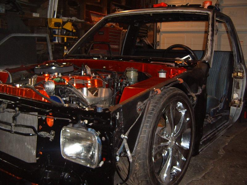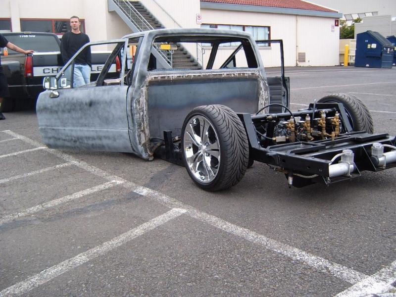 i saved its life from the pathetic notch and front & rear air shock setup (YES, I SAID AIR SHOCKS!!!) by using conitechs, GC 1/2" valves, notch, 4 link, tube upper & lowers, hand made tranny x-member, frame extended to fit longbed, & custom made 2 piece driveline w/ stock carrier bearing & crossmember added to frame (no z)