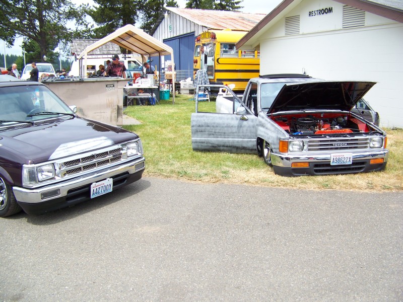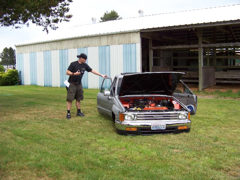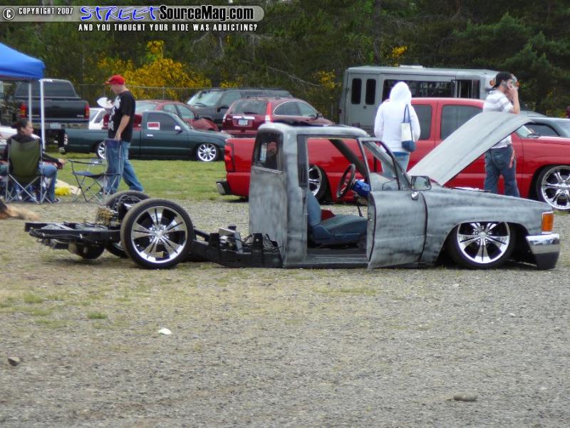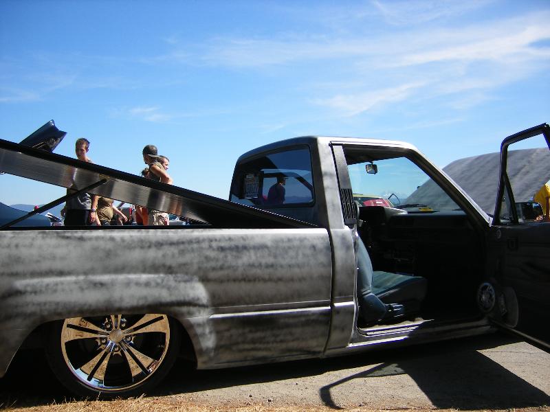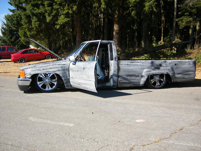 2& 3/4" traditional bd past pinch, suicide driver door, shaved everything, smooth back wall, american loooooongbed (came with japanese bed), 4x4 fenders, 95 4runner bumper, small-ass-pathetic rag top, smooth ass end w/led's STOCK HOOD!!!