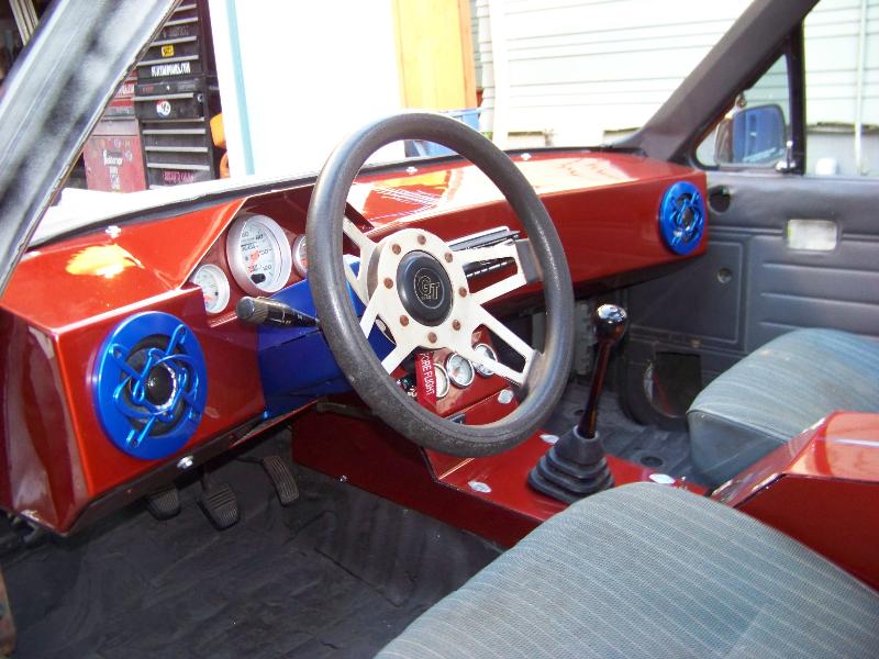 sheet metal dash w/autometer pro comp ultra lite gauges & center console with mr2 buckets & smooth back wall, fiberglass system