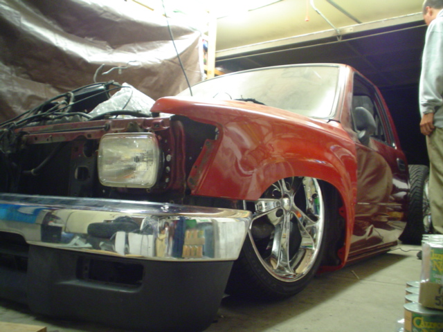 stock floored, clutch cylinder recessed 3.5 inches, tubbed for doozies, frame z'ed 1.5 inches. all tubular sub frame