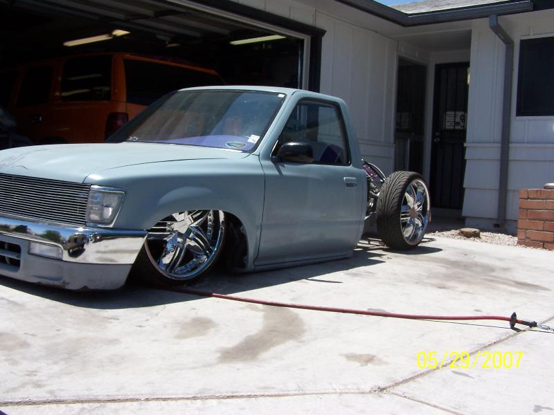 bodydropped 4 inches with geo metro break booster subframed rear end with 4 link all painted purple and silver. custom madem upper and lowers all tubular