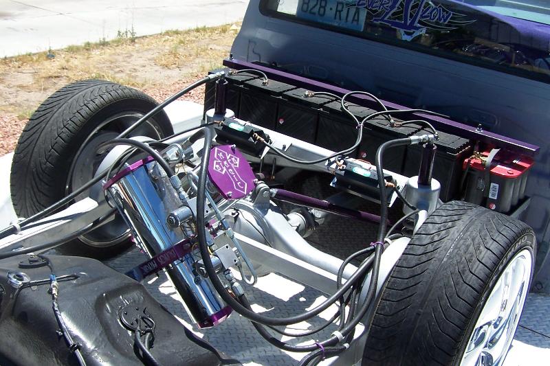 hydrolics. 2 pump 6 battery setup chrome and purple.