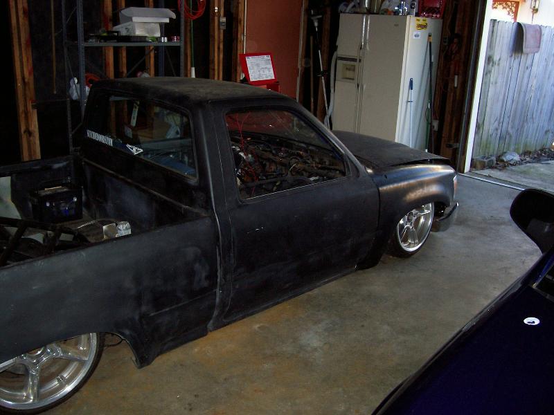 Shaved, tailgate welded shut, cowl welded to fenders. hood welded to fenders, fenders cut down behind the wheel to open with the hood, shaved wipers.