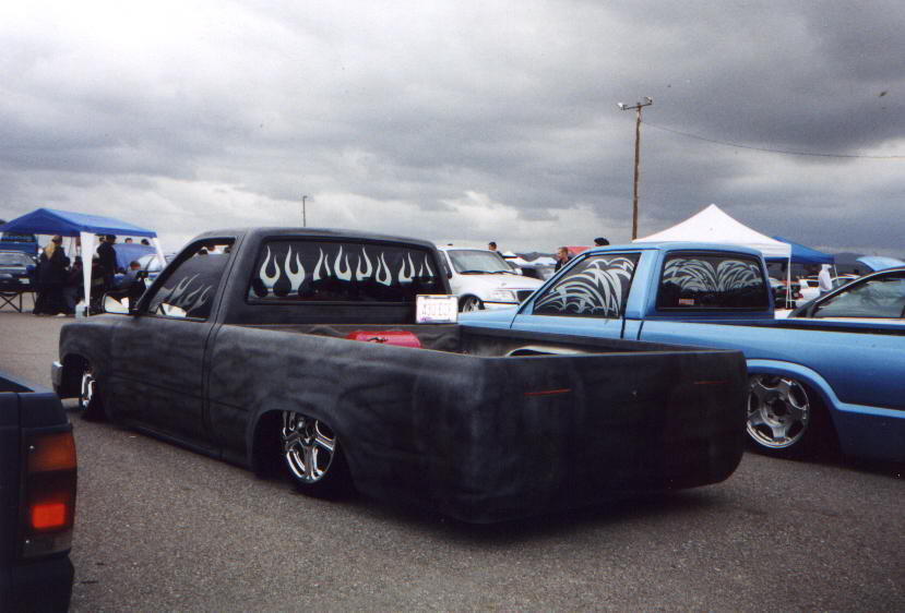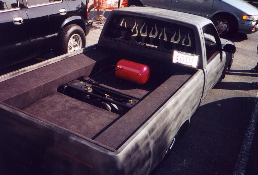 Was Pearl red which changed from red to pink done by Kal Koncepts, Fully shaved, welded shut tailgate with LEDs, custom bed pannels