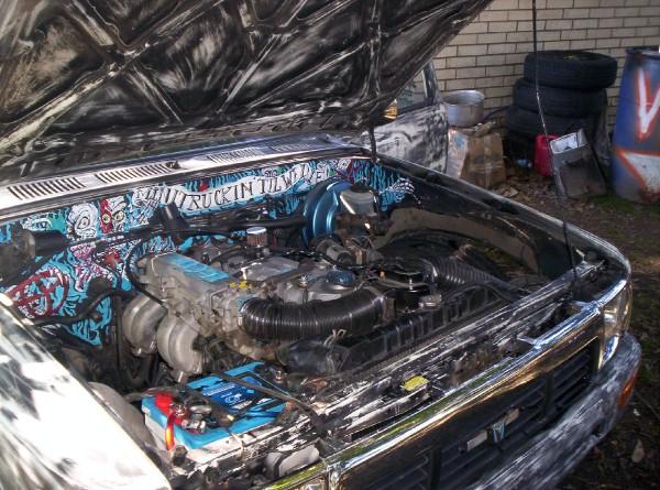 4runner fenders ,fully shaved..the paint is some sick twist of black and white..