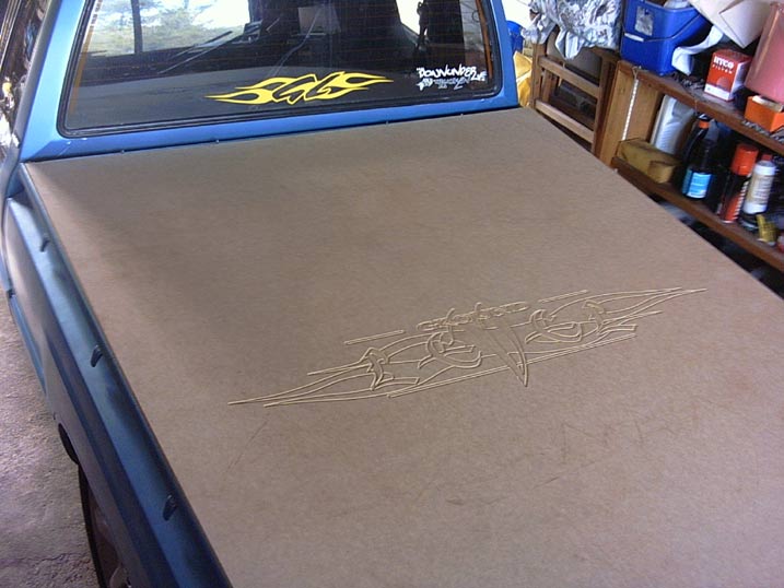 shaved door handles, shaved areial, 4x4 front guards custom dent in roof. 4x4 chrome bumper , 95 surf/4runner grille and headlights