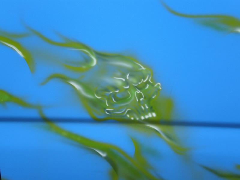 flat blue with green flames