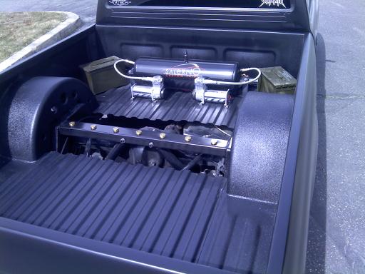 C-notch, Can-Do reverse 4-link set up, air bags, 2 pumps. All done by Clint Bray