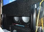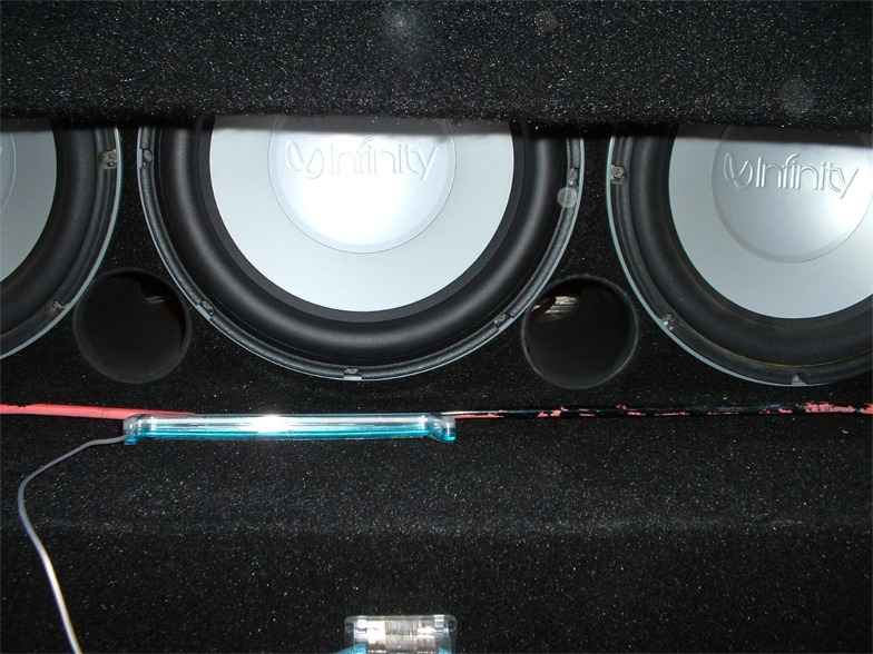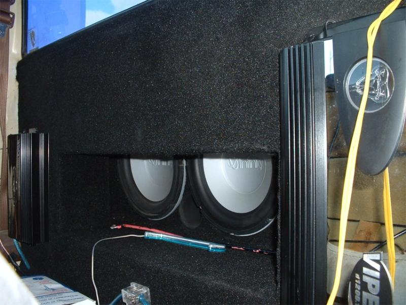 3 12 inch infinity perfect subs infinity kappa mids pioneer premier deck, DEI viper 1200.d (1500 watt)amp(2003line...got this amp before the price list came out!!! hook ups baby! i guess that makes me a first to have it) and a zapco 350 amp(400watts)(also a 2003 line that came out last month)...i had 1800 watts and just upgraded to 2000watts. I am hitting about 158dec.(db) with zero distortion!!! no mudd..all sound quality! ive now got a ported cut cab box designed for 3 12"subs