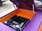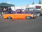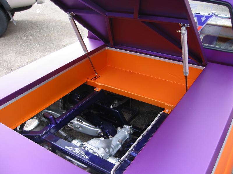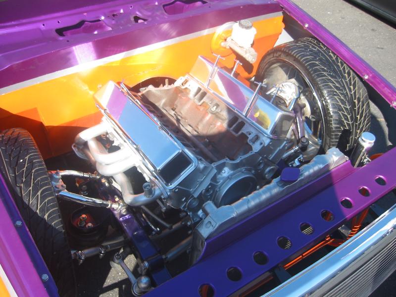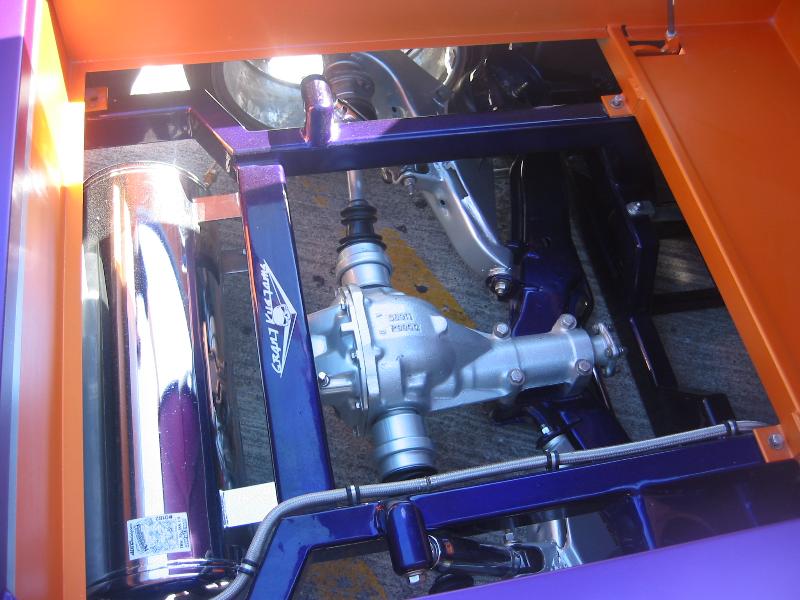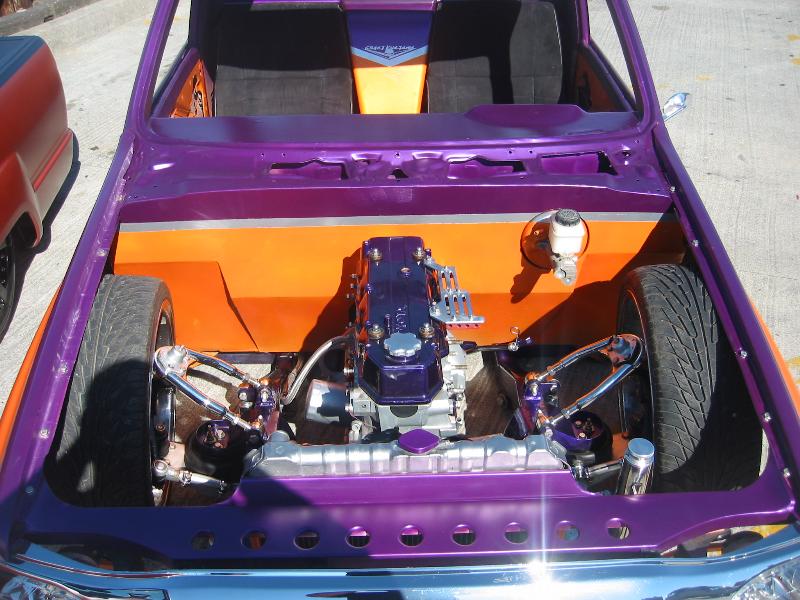 custom frame powdercoated kandy purple, 2000 vw silver parts and chrome everything else, used all stainless hardware, 300 zx rear end, speedway front tubular controlarms, slam es bags all 4, 8 smc valves,two viar 450 comps, 9 gallon chrome tank, frame built by bob grant and front of frmae done by me